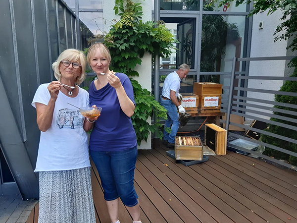 auxilion Vorstand begrüsst die ersten 2 Bienenvölker in Heppenheim an der Bergstraße